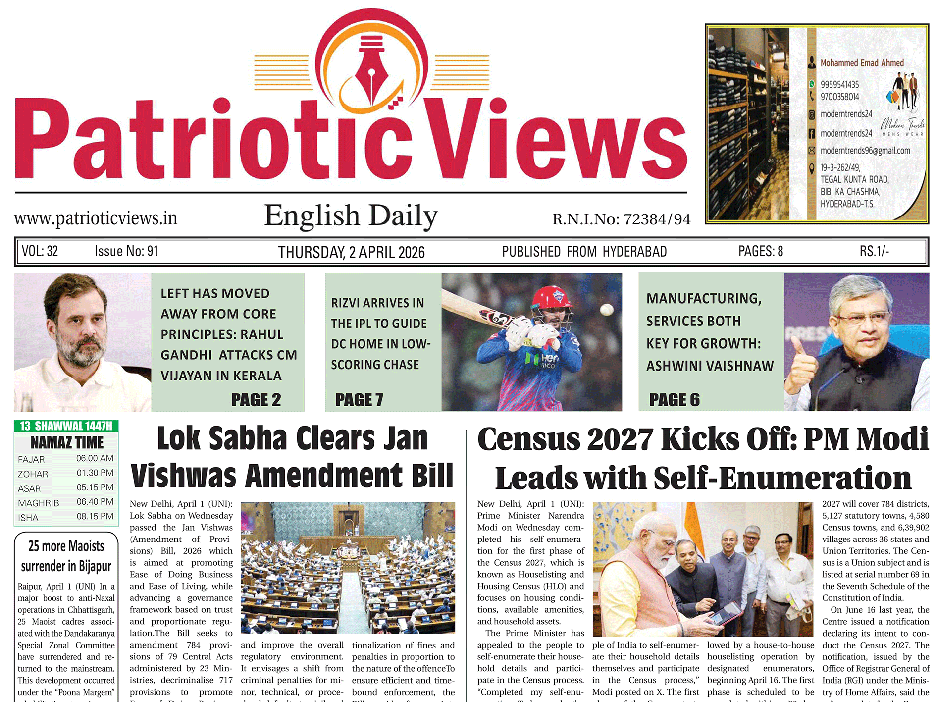 #English Daily #Uncategorized Welfare of All Sections is Government’s Priority: Minister Damodar Rajanarasimha Sangareddy, April 2: Telangana Health Minister Damodar Rajanarasimha stated that the state government is committed to the welfare of all Patriotic Views / 1 week Comment (0) (31)