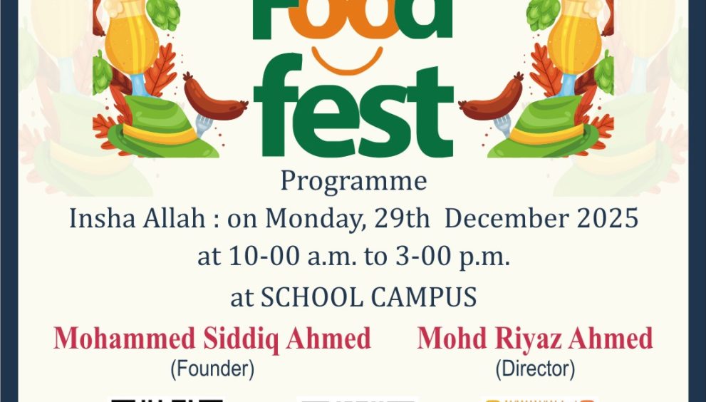 Riyaz Islamic School, Mustafa Nagar, Falaknuma, Hyderabad, is set to organise a vibrant Food Fest Programme on Monday, 29th December 2025, from 10:00 a.m. to 3:00 p.m. at the school campus.
