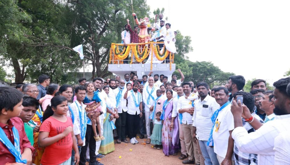 Siddipet: Former Ministers T. Harish Rao and V. Srinivas Goud, along with local leaders, participated in the unveiling of the statue of the great warrior Sardar Sarvai Papanna Goud at Gonipally village, Siddipet, organized under the auspices of the Kaudinya Youth Association.