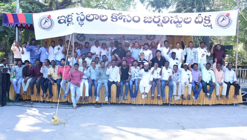 Nirmal, Dec. 23(Abdul Majid): Journalists under the banner of the Nirmal Press Club staged a protest in front of the RDO office at the Nirmal district headquarters on Tuesday, demanding allotment of house sites and resolution of long-pending issues faced by the journalist community.