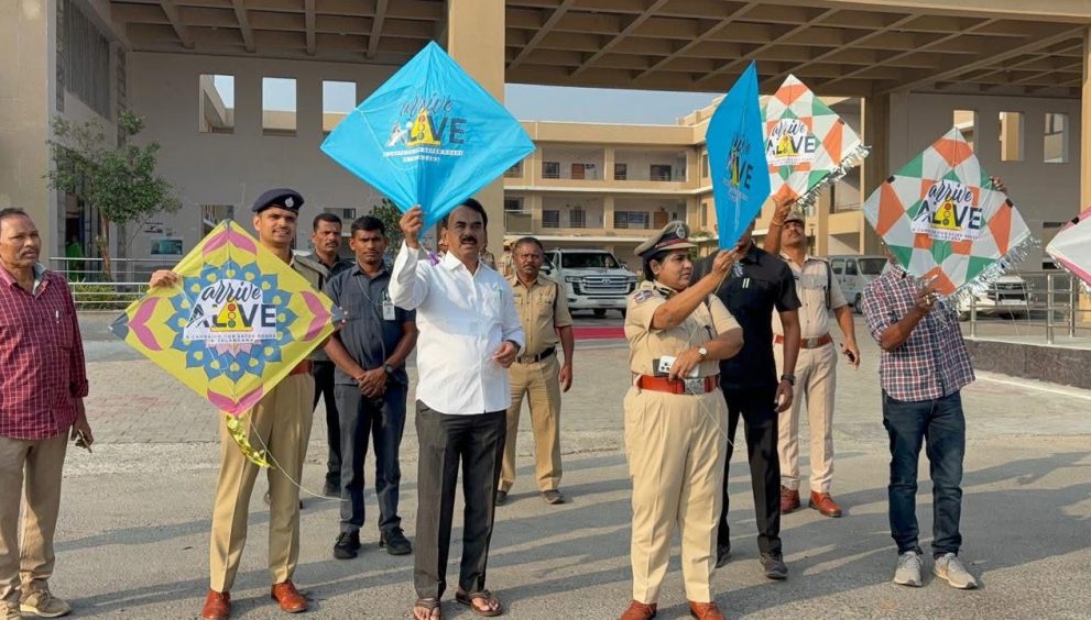 Nirmal: Telangana Minister Jupally Krishna Rao participated in the ‘Arrive Alive’ road safety awareness programme organised in Nirmal district on Tuesday. As part of the campaign, kites carrying the slogan “Arrive Alive” were flown to spread awareness among the public on the importance of road safety.