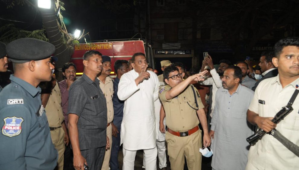 Hyderabad Hon’ble Minister for Minorities Welfare and Public Enterprises, Government of Telangana, Mohammed Azharuddin, visited Nampally today following the tragic fire incident. The Minister inspected the affected area and took stock of the situation firsthand.