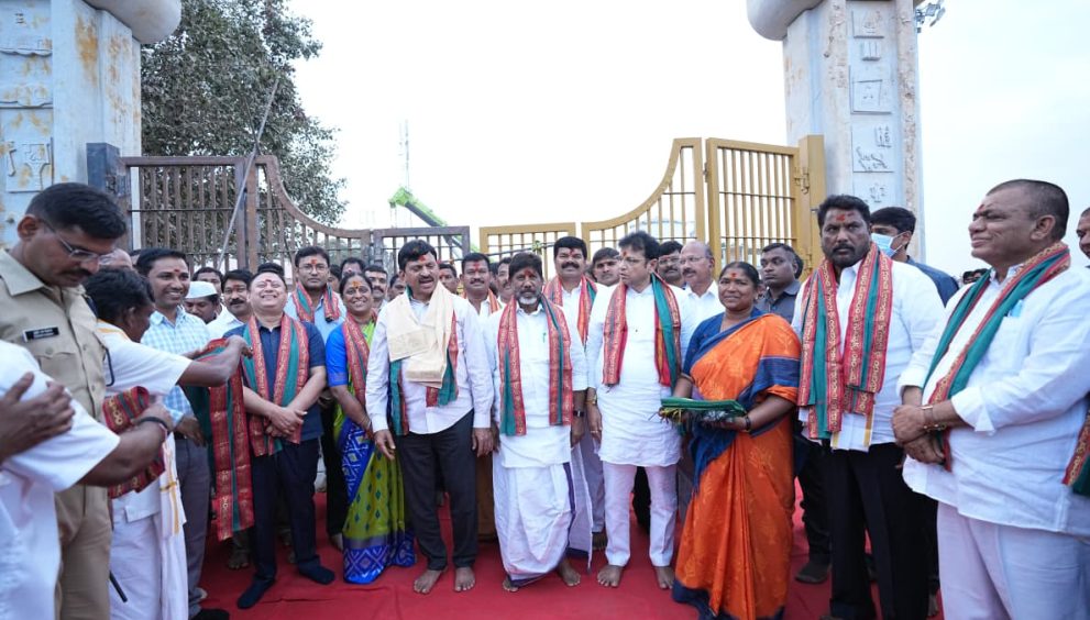 The Deputy Chief Minister reviewed the Jatara arrangements at Medaram along with Ministers Sridhar Babu, Konda Surekha, Ponguleti Srinivas Reddy, Seethakka, and Adluri Laxman. After inspecting the works, he spoke to the media and later offered prayers to the presiding goddesses.