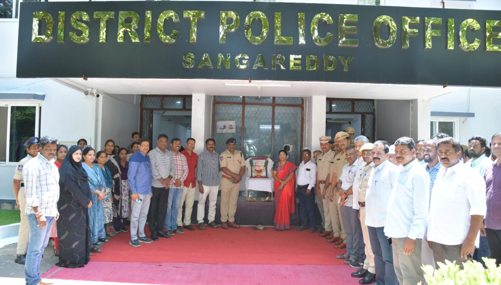 Sangareddy, Telangana: On the occasion of the birth anniversary of Telangana People’s Poet and Padma Vibhushan Awardee Dr. Kaloji Narayana Rao, the District Police Office, Sangareddy paid a grand tribute by garlanding the portrait of Kaloji Narayana Rao with flowers. The tribute was offered by ER DSP Narendra.