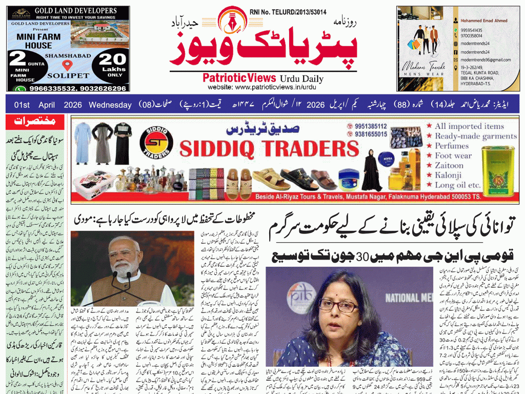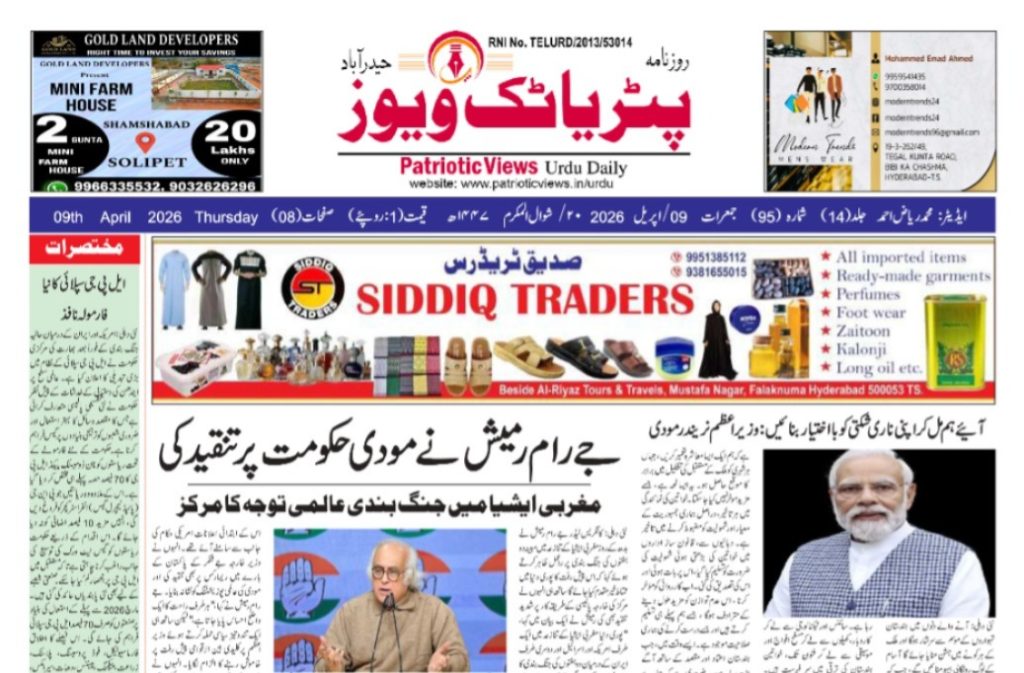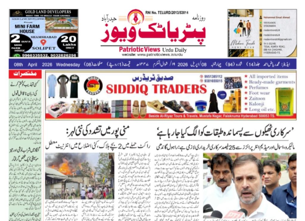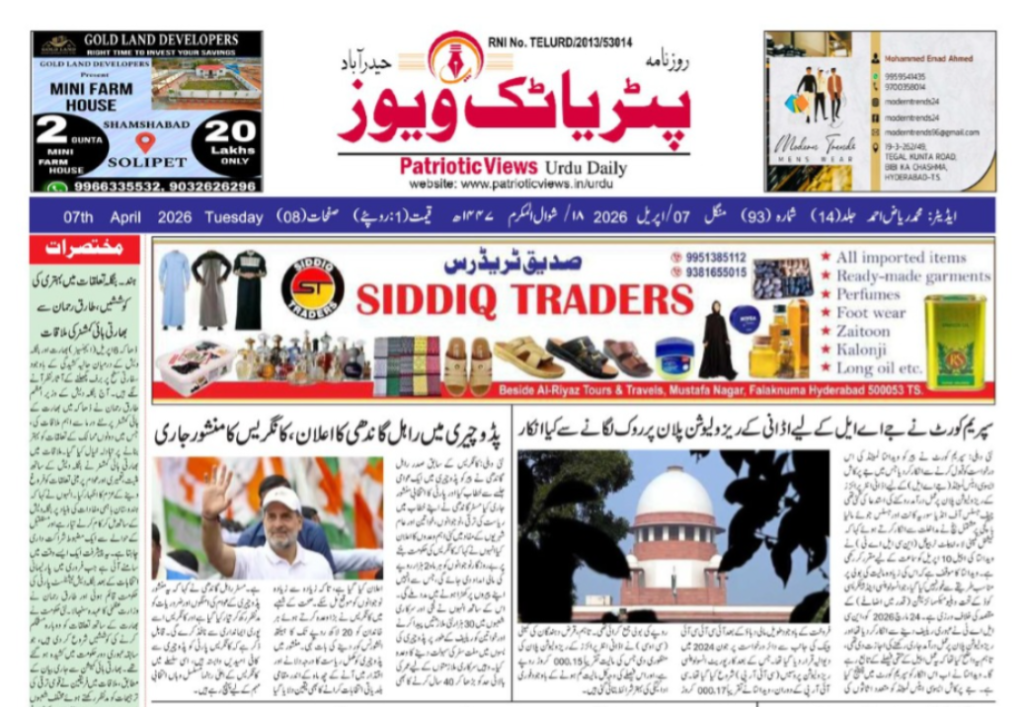 08/04/2026صدر تلنگانہ جاگروتی کلواکنٹلہ کویتا نے اعلان کیا ہے کہ 25 اپریل کا دن تلنگانہ کی تاریخ اور مستقبل کو بدلنے والا دن ثابت ہوگا جب نئی سیاسی جماعت کے