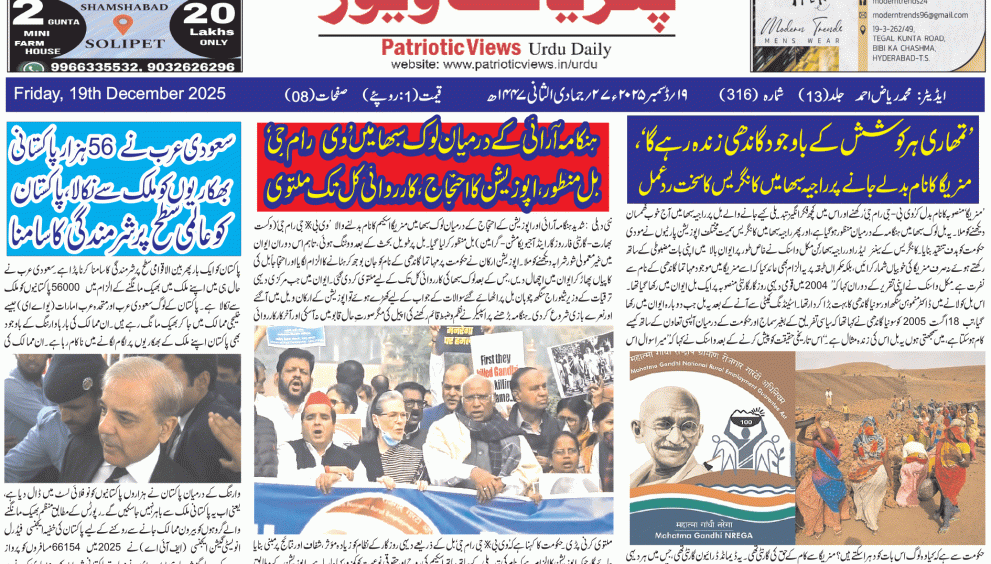 #تلنگانہ 19 دسمبر2025 Patriotic Views / 3 ہفتے جمعہ 28 جمادی الثانی 1447هـ 0 0منٹ میں پڑھا جائے Post Views: 11 Share: