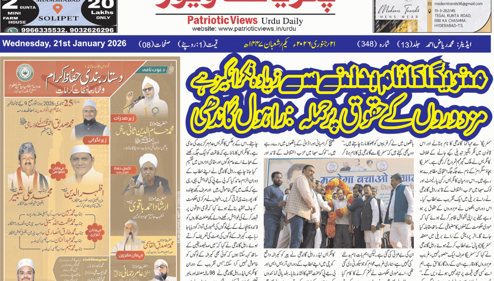 #اردو روزنامہ 2026 /جنوری/ 21 Patriotic Views / 1 مہینہ بدھ 2 شعبان 1447هـ 0 0منٹ میں پڑھا جائے Post Views: 17 Share: