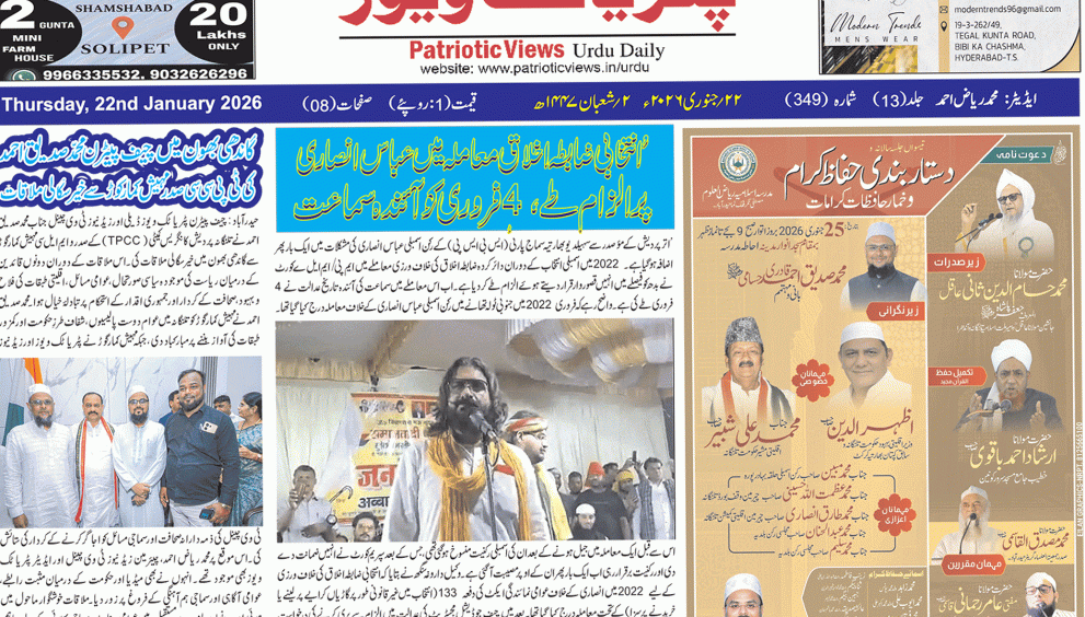 #اردو روزنامہ 2026/01/22 Patriotic Views / 1 مہینہ جمعرات 3 شعبان 1447هـ 0 0منٹ میں پڑھا جائے Post Views: 15 Share: