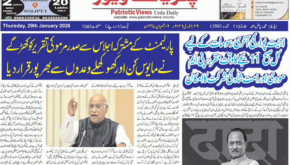 #اردو روزنامہ 2026/01/29 Patriotic Views / 4 ہفتے جمعرات 10 شعبان 1447هـ 0 0منٹ میں پڑھا جائے Post Views: 18 Share: