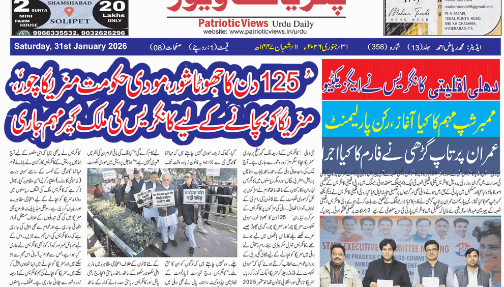 #اردو روزنامہ 31 جنوری 2026 Patriotic Views / 3 ہفتے ہفتہ 12 شعبان 1447هـ 0 0منٹ میں پڑھا جائے Post Views: 26 Share: