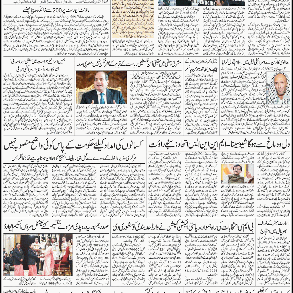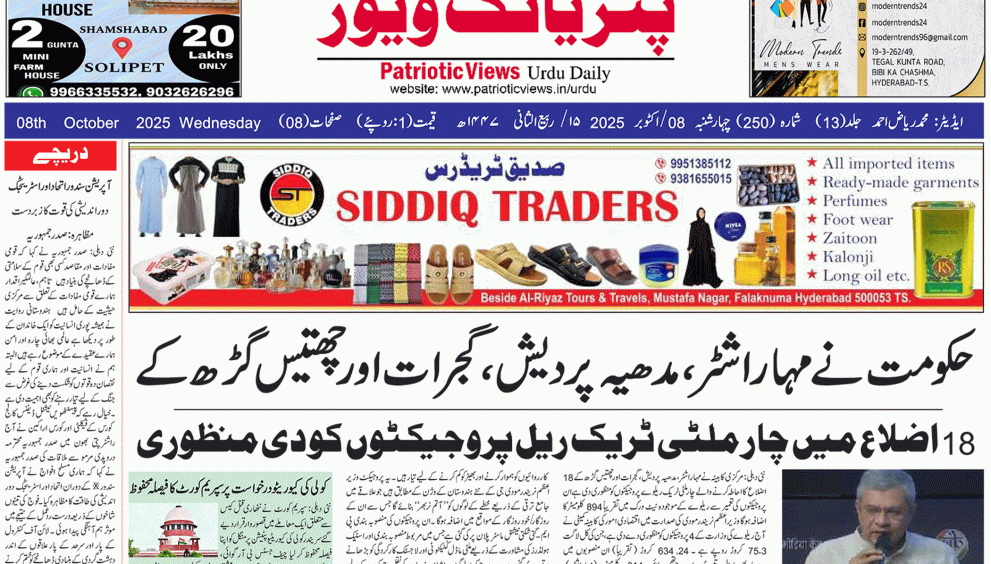#اردو روزنامہ 8 اکتوبر 2025 Patriotic Views / 2 مہینے ہفتہ 10 جمادی الاول 1447هـ 0 0منٹ میں پڑھا جائے Post Views: 13 Share: