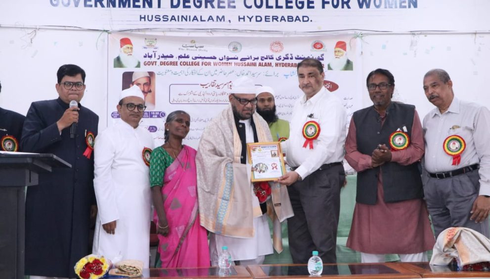 حیدر آباد ۳۲ /اکتوبر (راست)ڈاکٹر محمد انور الدین کنوینر و صدر شعبہئ اردو کی اطلاع کے بموجب یوم سر سید کے ضمن میں ”سر سید احمد خاں :عصر حاضر میں ان کے افکار کی اہمیت و معنویت“کے موضوع پر مورخہ ۲۲ اکتوبر ۵۲۰۲ء کو خورشید جاہ سیمینار ہال گورنمنٹ ڈگری کالج برائے نسواں حسینی علم حیدرآباد میں ایک روزہ قومی ورک شاپ کا انعقاد تلنگانہ ریاستی اردو اکیڈمی کے مالی تعاون اور روزنامہ سیاست کے اشتراک سے عمل میں آیا جس کی صدارت پروفیسر سی ایچ اپیا چننما پرنسپل کالج ھٰذا نے فرمائی۔ابتداء میں ڈاکٹر محمد انور الدین کنوینر اجلاس نے شعبہ کی کار کردگی اور یک روزہ قومی ورک شاپ کے انعقادکے اغراض و مقاصد بیان کیے جبکہ ڈاکٹر سری دیوی آئی کیو اے سی کوآرڈینیٹر نے کالج کا تعارف پیش کیا اور ڈاکٹر پی لتا اکیڈمک کو آرڈینیٹر نے کالج کی کارکردگی کو پیش کیا۔ افتتاحی اجلاس میں محترم محمد صفی اللہ آئی ایف ایس ڈائریکٹر سیکریٹری تلنگانہ ریاستی اردو اکیڈمی و ایگزیکٹیو آفیسر تلنگانہ حج کمیٹی نے بحیثیت مہمان خصوصی شرکت فرمائی جبکہ محترم وی کرشنا اسسٹنٹ ڈائریکٹر تلنگانہ ریاستی اردو اکیڈمی،پروفیسر عتیق اقبال سابق پرنسپل اردو آرٹس ایوننگ کالج حمایت نگر و شریک معتمد انجمن ترقی اردو ریاست تلنگانہ و آندھرا پردیش نے بحیثیت مہمان اعزازی شرکت فرمائی۔تکنیکی سیشن کی صدارت ڈاکٹر مختار احمد فردین صدر آل انڈیا اردو ماس سو سائٹی حیدرآباد نے کی۔اس سیشن میں جن شخصیتوں نے سر سید احمد خاں :عصر حاضر میں ان کے افکار کی اہمیت و معنویت کے موضوع پر مباحثوں میں حصہ لیا ان میں ڈاکٹر محمد نہال افروز اسسٹنٹ پروفیسر اردو نظامت فاصلاتی تعلیم مولانا آزاد نیشنل اردو یونیورسٹی،ڈاکٹر سید اسرار الحق سبیلی صدر شعبہئ اردو گورنمنٹ سٹی کالج (خود مختار)نیا پل حیدرآباد،ڈاکٹر تجمل حسین جونیر لکچرر اردو،بازار گھاٹ اور بین الاقوامی شہرت یافتہ پروفیسر ایم اے نجیب کے علاوہ محترم جاوید شریف نے حصہ لیا۔اس موقع پر یوم سر سید کی نسبت اور میر انیس کے حوالے سے تمثیلی مرثیہ خوانی کا انعقاد عمل میں آیا،اس سے قبل کہ مرثیہ خواں اپنے ہنر کے جوہر دکھاتے شہر حیدرآباد کی نامور سماجی جہد کار محترمہ رفیعہ نوشین نے میر ببر علی انیس کا سیر حاصل تعارف پیش کیا۔اس پروگرام میں بین الاقوامی شہرت یافتہ شاعر وماہر انیسیات شاہ نواز مرزا نے میر انیس کے منتخبہ مراثی سے انتخاب کرتے ہوئے تقریباََ پانسو اشعار مختلف موضوعات کے تحت فی البدیع سنا کر ماحول کو گرماتے ہوئے حاضرین و ناظرین میں ایک سماع باندھ دیا۔یک روزہ قومی کارگاہ کے اختتامی اجلاس میں پروفیسر سی ایچ اپیا چننما پرنسپل کالج ھٰذا نے صدارت کی جبکہ ڈاکٹر ایم اے نجیب،ڈاکٹر محمد غوث،پروفیسر ذو الفقار محی الدین صدیقی،محترمہ رفیعہ نوشین،ڈاکٹر مختار احمد فردین اور محترم شاہ نواز مرزا نے اپنے خیالات کا اظہا ر کرتے ہوئے ایک روزہ قومی ورک شاپ کے کامیاب انعقاد پر شعبہئ اردو کو مبارکباد دی۔اس موقع پر تمام مندوبین کی شال پوشی و گل پیشی کے ہمراہ تحائف عطا کیے گئے دریں اثنا آل انڈیا اردو ماس سوسائٹی فار پیس حیدرآباد کی جانب سے جملہ دس شخصیتوں کو اردو انمول رتن ایوارڈ برائے سال ۵۲۰۲ سے سرفراز کیا گیا جن میں پروفیسر عتیق اقبال شریک معتمد انجمن ترقی اردو آندھرا پردیش و تلنگانہ،پروفیسر ذو الفقار محی الدین صدیقی صدر شعبہئ عربک کالج ھٰذا،محترم شاہ نواز مرزا ماہر انیسیات، جناب جاوید شریف،محترم شکیل احمد کے علاوہ ڈاکٹر ممتاز جہاں ادا کو با وقار ایوارڈ سے نوازا گیامستزاد شولا پور سے تشریف لانے والے سماجی جہد کار محترم سلطان اختر،ناندیڑ سے تشریف لانے والے ارشاد احمد خاں و پربھنی سے تشریف لانے والے پروفیسر نور الامین کے علاوہ بیجا پور کرناٹک سے تشریف لانے والے ڈاکٹر سید علیم اللہ حسینی کو بھی انمول رتن ایوارڈ تفویض کیے گئے۔اس پروگرام کا اختتام یک سالہ اردو ڈپلوما کورس قومی کونسل برائے فروغ اردو زبان نئی دہلی کے تعلیمی سال ۴۲۰۲۔۵۲ کے اسناد کی ت