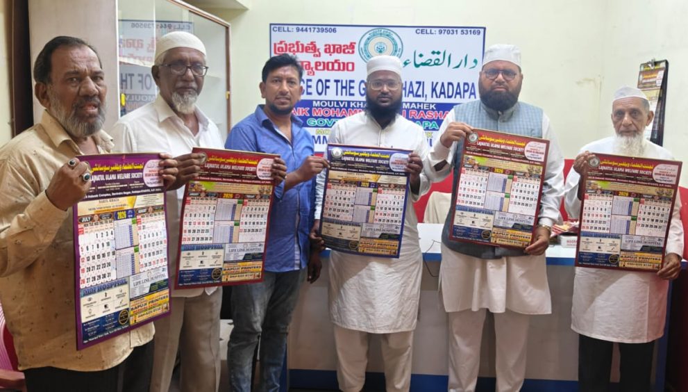 دنیوی اور دینی ضرورت کو مدنظر رکھتے ہوئے شمسی و قمری تاریخوں کے ساتھ شھر کڈپہ کا سال بھر کا اوقات الصلاۃ کے ساتھ کیلنڈر کی اشاعت اور فری تقسیم ہوتی آرہی ہے۔امسال بھی لجنۃ العلماء ویلفیئر سوسائٹی کڈپہ کی جانب سے 2026 کا کیلنڈر کی اشاعت کی گئی ۔ اور اسکی افتتاح دفتر دارالقضاء و ہڈآفیس لجنۃ العلماء ویلفیئر سوسائٹی کڈپہ میں بدست اقدس حضرت مولانا مولوی مفتی سید شاہ غوث احمد صاحب نظامی سجادہ نشین خانقاہ نوریہ قادریہ سہروردیہ عمل آئی۔
