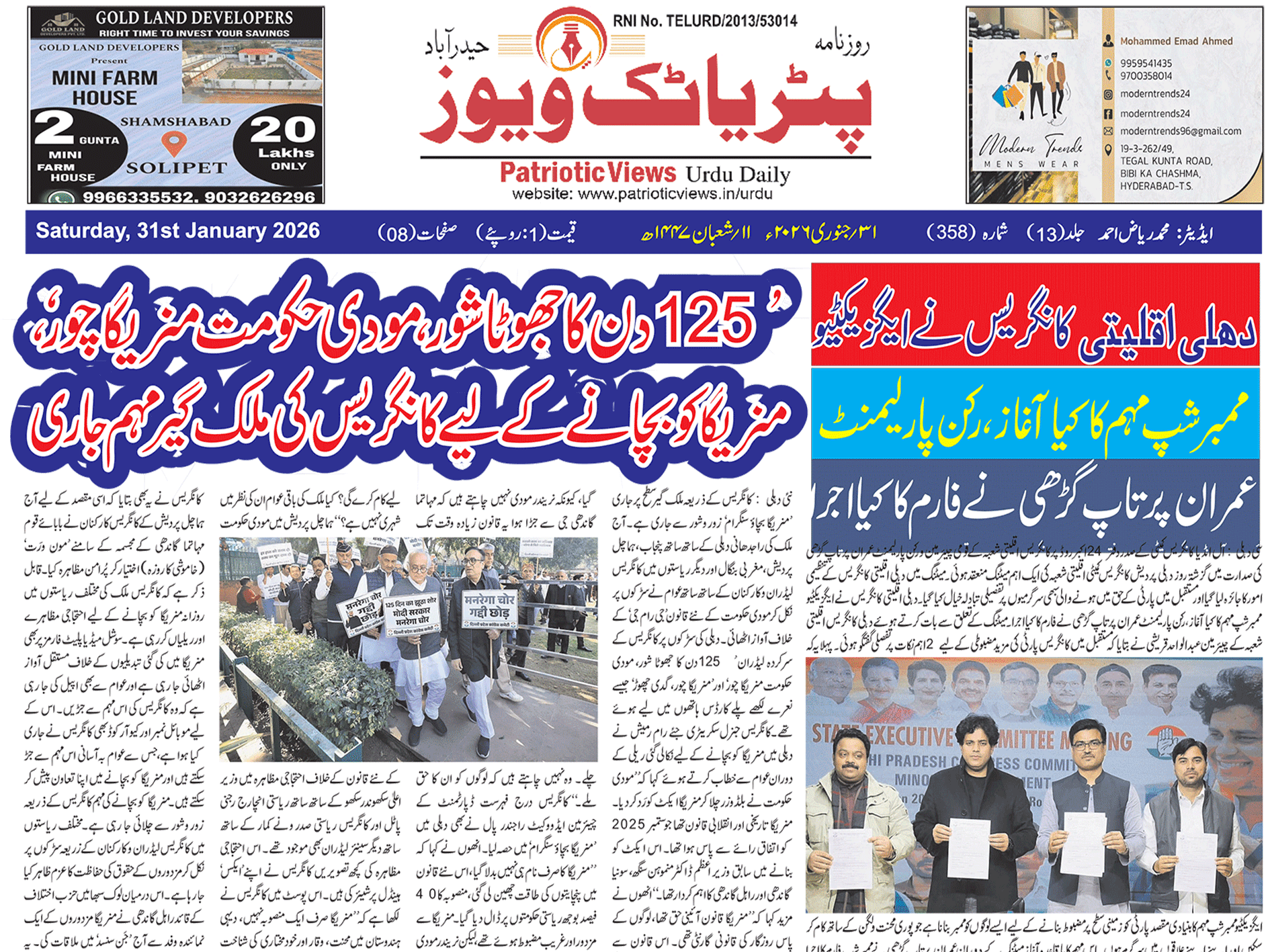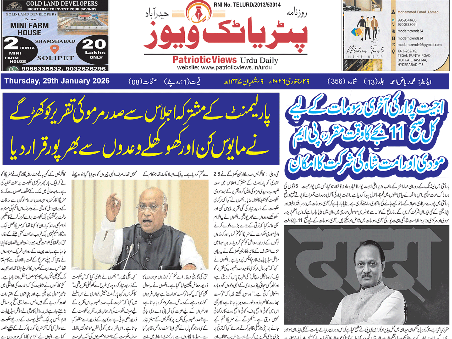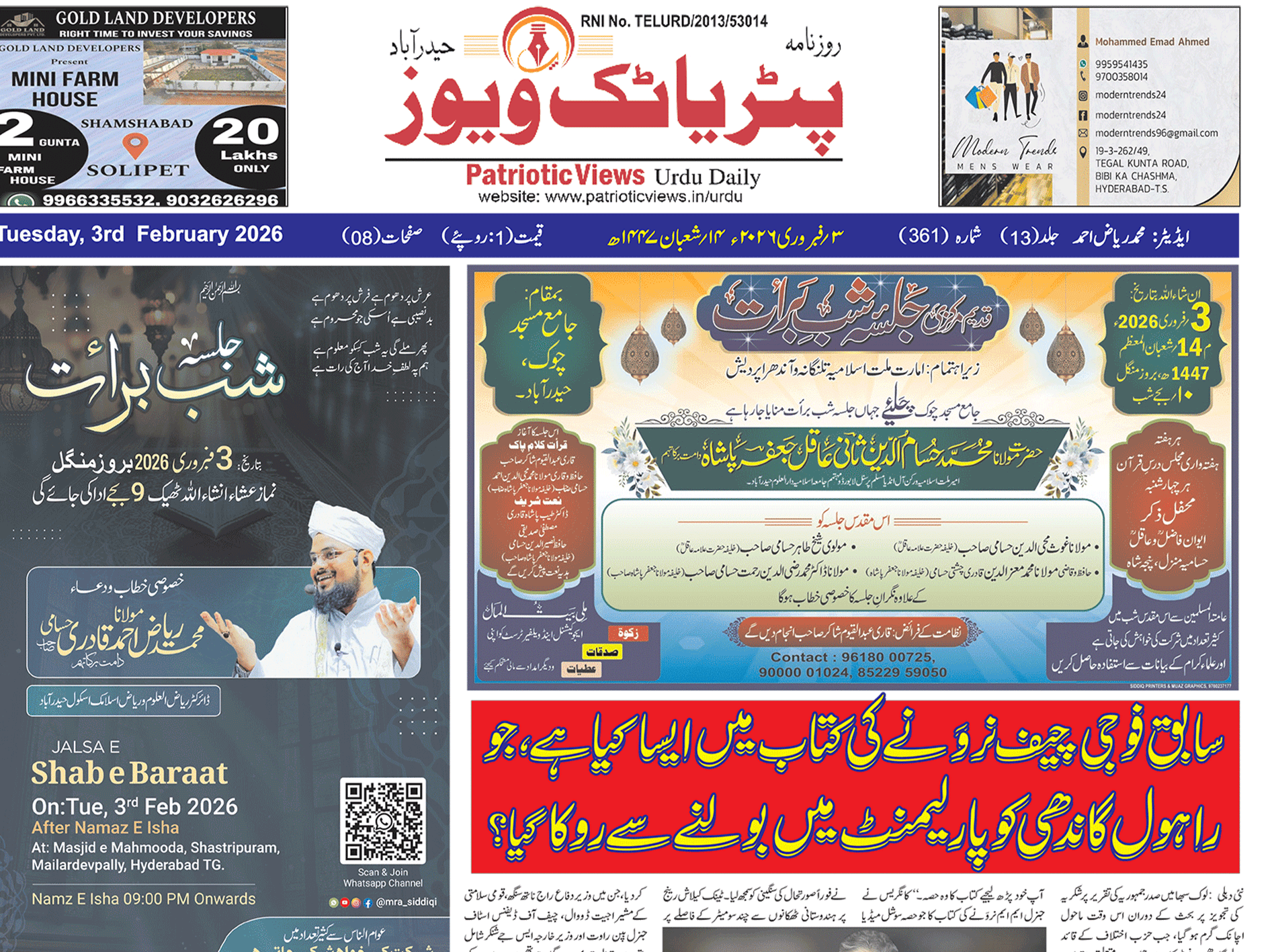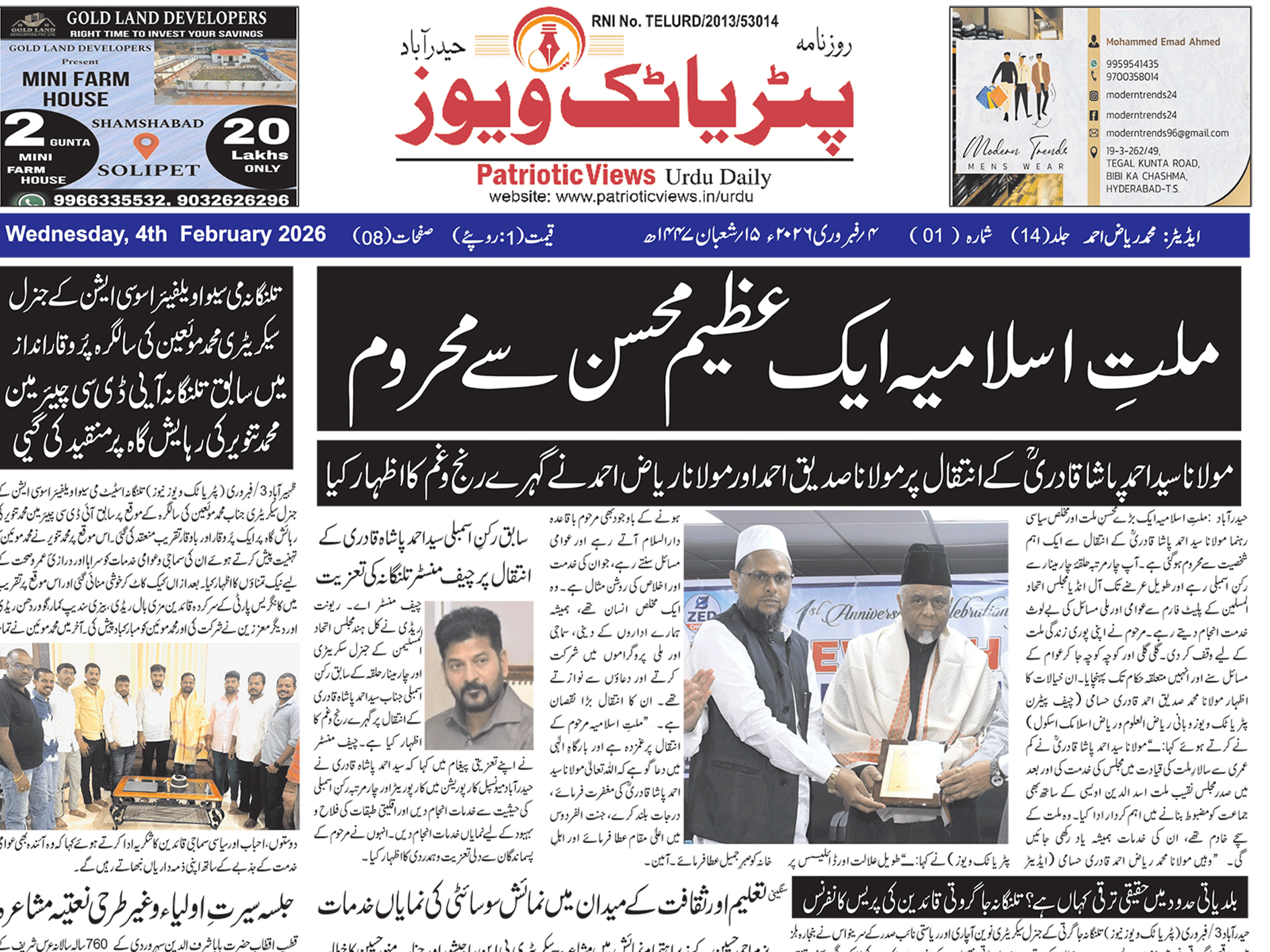 #اردو روزنامہ ملتِ اسلامیہ ایک عظیم محسن سے محروم مولانا سید احمد پاشا قادریؒ کے انتقال پر مولانا صدیق احمد اور مولانا ریاض احمد نے گہرے رنج و غم Patriotic Views / 2 مہینے Comment (0) (40)