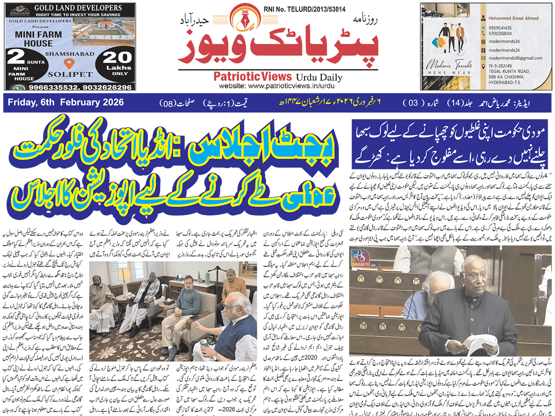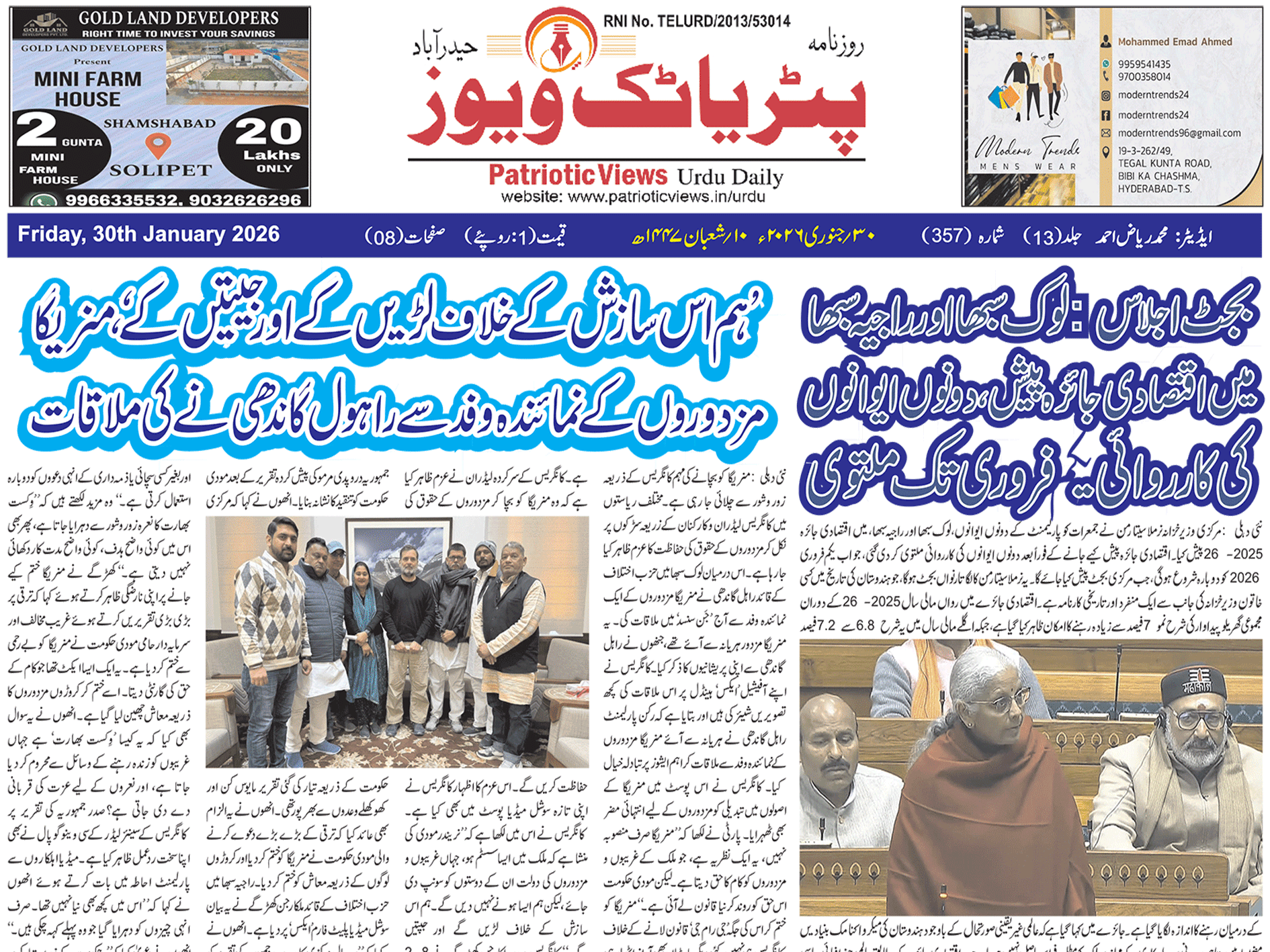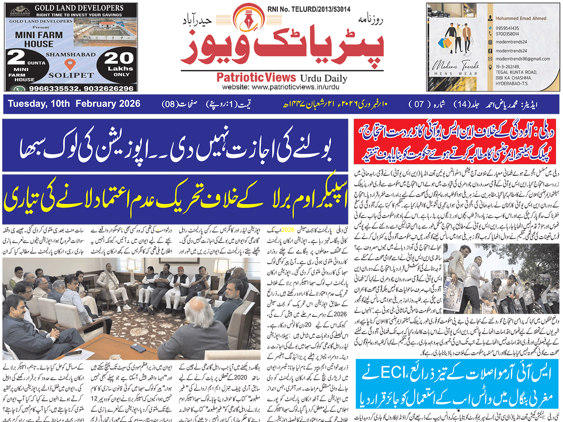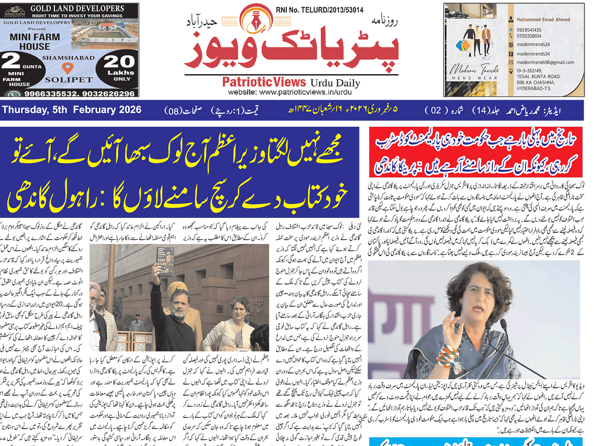 #اردو روزنامہ ملتِ اسلامیہ ایک عظیم محسن سے محروم مولانا سید احمد پاشا قادریؒ کے انتقال پر مولانا صدیق احمد اور مولانا ریاض احمد نے گہرے رنج و غم Patriotic Views / 2 مہینے Comment (0) (40)