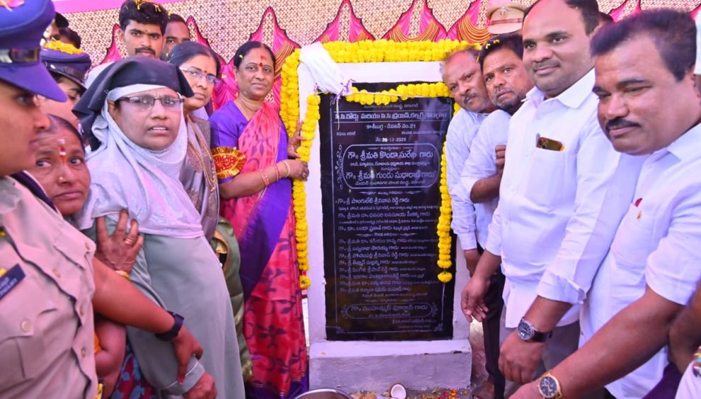 ورنگل۔/20ڈسمبر (نامہ نگار) گریٹر ورنگل میونسپل کارپوریشن حدود میں21ویں ڈویژن تلک روڈ علاقے میں بلدیہ عام فنڈ سے 45 لاکھ روپے کی لاگت سے مکمل ہونے والے سی سی روڈ اور ڈرین کاموں کا سنگِ بنیاد ریاستی وزیر محترمہ کونڈا سریکھا نے انجام دیا۔اس موقع پر وزیر کونڈا سریکھا کے ہمراہ مقامی کارپوریٹر محمد فرقان موجود تھے۔وزیر موصوفہ نے ناریل پھوڑ کر تعمیراتی کاموں کا افتتاح کیا۔اس موقع پرخطاب کرتے ہوئے کونڈا سریکھا نے کہا کہ حکومت عوامی سہولتوں کی ترقی پر خصوصی توجہ دے رہی ہے تاکہ شہری علاقوں میں عوام کو معیاری سہولتیں فراہم کی جاسکیں۔ تقریب میں سابق کارپوریٹرس، کانگریس پارٹی کے سینئر قائدین، کارکنان، بلدی عہدیداران، عوامی نمائندے، محلہ معززین اور مقامی عوام نے بڑی تعداد میں شرکت کی۔