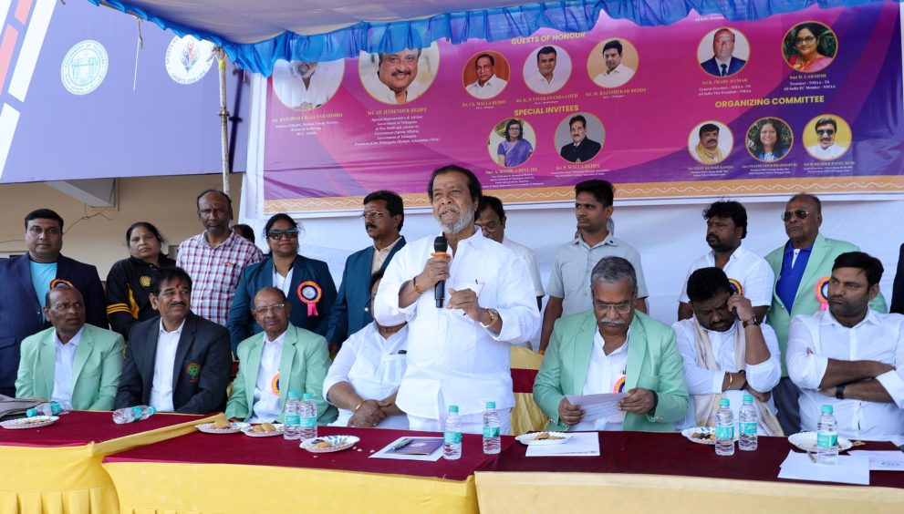 تلنگانہ کے وزیر صحت دامودار راجنرسمہا نے گچی بائولی اسٹیڈیم میں 11ویں تلنگانہ اسٹیٹ ماسٹرز ایتھلیٹک چیمپئن شپ کے آغاز پر خطاب کیا۔ اس موقع پر وزیر نے نیشنل ماسٹرز ایتھلیٹک ایسوسی ایشن (NMAA) کو کھیلاڑیوں کو فروغ دینے کے لیے ان کی کوششوں پر مبارکباد دی اور اس ایونٹ میں شرکت کرنے والے تمام کھیلاڑیوں کو نیک خواہشات پیش کیں۔