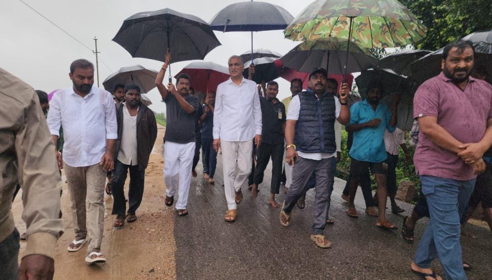 میدک میں سیلاب متاثرہ علاقوں کا دورہ، سابق وزیر ہریش راؤ کی سخت تنقید