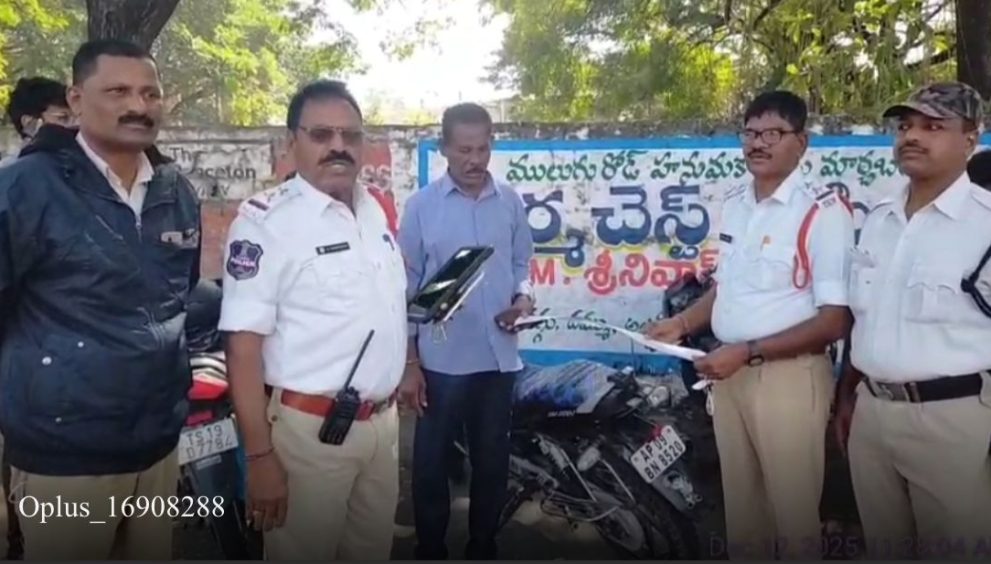 ورنگل۔/12 ڈسمبر (نامہ نگار)قاضی پیٹ ٹریفک پولیس نے ایک ایسی موٹر سائیکل کو ضبط کرلیا جس پر 103 زیرِ التوا چالان بقایا تھے۔ ان چالانوں کی مجموعی رقم روپے 25,105 بتائی گئی ہے۔تفصیلات کے مطابق، قاضی پیٹ ٹریفک پولیس اسٹیشن حدود میں انسپکٹر وینکنا کی قیادت میں، ایس آئی کنکہ چندرم اور ایس آئی سمپتھ کے نگرانی میں قاضی پیٹ چرچ کے قریب وہیکل چیکنگ کی جارہی تھی۔ اسی دوران پولیس نے ایک بائیک کو روکا جس پر ایک سو تین بقایا چالان پائے گئے۔ پولیس نے فوری طور پر موٹر سائیکل کو ضبط کرکے اسٹیشن منتقل کردیا۔