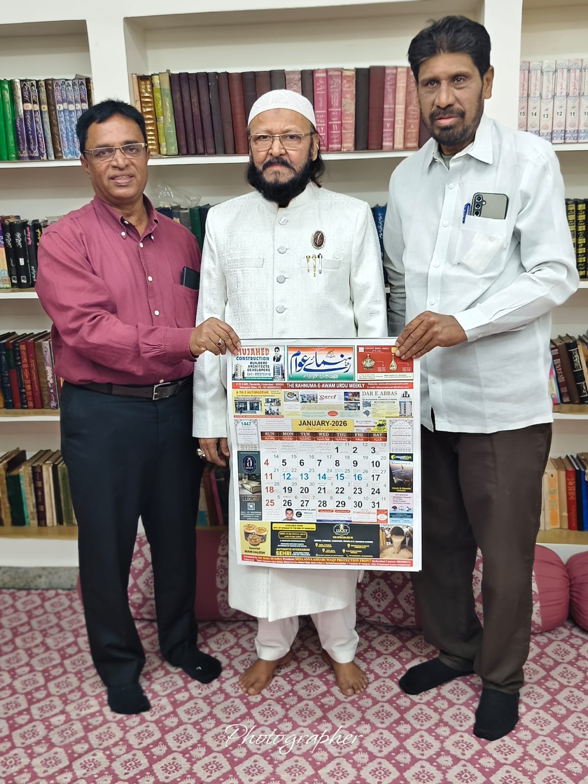 #تلنگانہ ہر سال کی طرح امسال بھی رہنمائے عوام کیلنڈر 2026 کا حضرت مولانا سید وحید الدین ،حیدر جعفری صاحب قبلہ آخباری کے ہاتھوں رسمِ اجرائ عمل میں لائی گئی، اس موقع پر جناب میر حیدر علی Patriotic Views / 4 ہفتے Comment (0) (25)