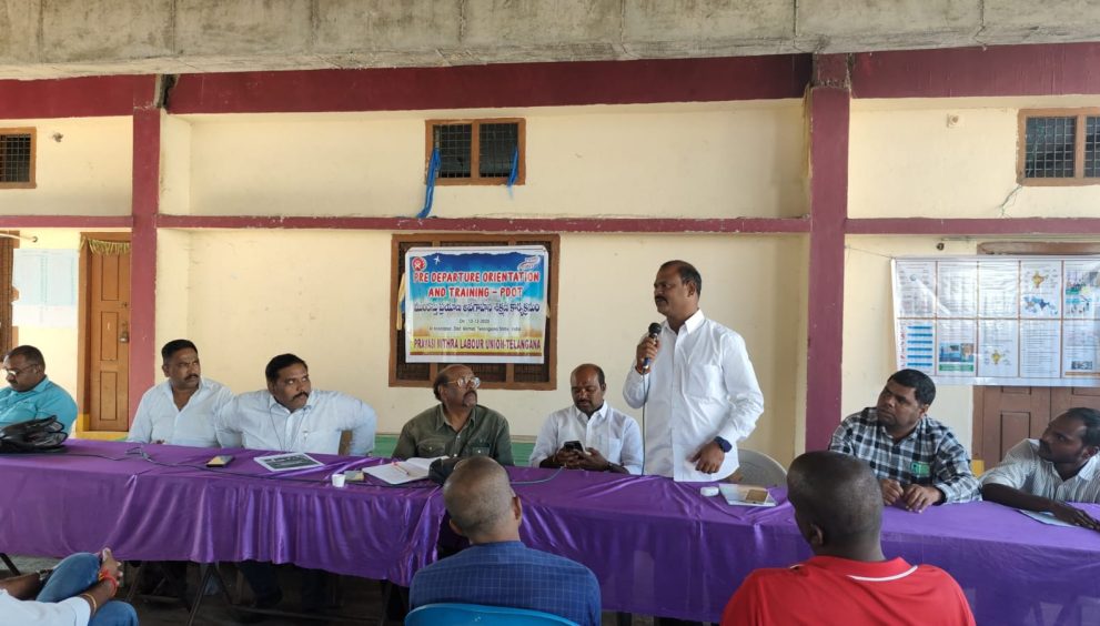 نرمل، 13/ڈسمبر (ایم۔اے۔وحید): خلیجی ممالک میں ملازمت کے خواہش مند افراد کے لئے ضلع نرمل کے خانہ پور میں ہفتہ کے دن پیشگی سفری شعور بیداری تربیت (پری ڈپارچر ٹریننگ اینڈ اورینٹیشن – پی ڈی او ٹی) پروگرام منعقد کیا گیا۔ اس پروگرام کا اہتمام پراواسی متر لیبر یونین کی جانب سے کیا گیا۔