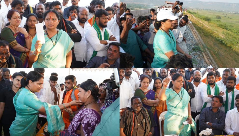 صدر جاگروتی کے کویتا کا نکل گنڈی پراجیکٹ کا دورہ، متاثرہ کسانوں سے اظہار یکجہتی
