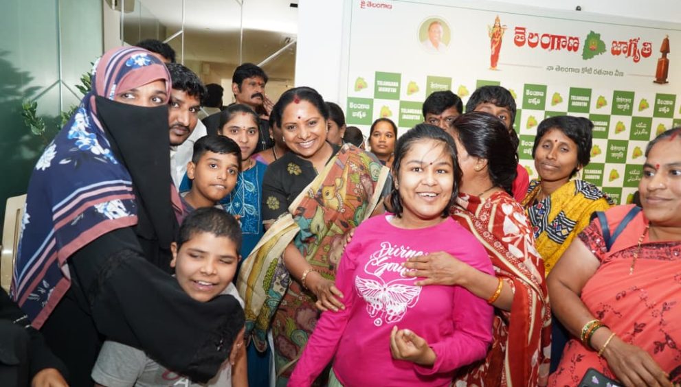 صدر تلنگانہ جاگروتی کلواکنٹلہ کویتا نے بوئن پلی میں واقع نیشنل انسٹی ٹیوٹ فار امپاورمنٹ آف پرسنس وتھ انٹیلیکچول ڈس ایبیلٹیز (این آئی ای پی آئی ڈی) میں تربیت حاصل کرنے والے خصوصی نگہداشت کے حامل بچوں اور ان کے والدین سے ملاقات کی۔ بعد ازاں بنجارہ ہلز میں واقع تلنگانہ جاگروتی کے دفتر میں خصوصی اجلاس کے دوران انہوں نے ان بچوں اور والدین کے درپیش مسائل سے تفصیلی واقفیت حاصل کی ۔کلواکنٹلہ کویتا نے کہا کہ ذہنی نشوونما میں کمی کا شکار بچوں کے لئے آج تک کسی بھی حکومت نے سنجیدہ اقدامات نہیں کئے۔ انہوں نے افسوس کا اظہار کرتے ہوئے کہا کہ ہمارے ملک میں طویل عرصہ تک ذہنی طور پر متاثرہ افراد کو معذورین کے زمرے میں شامل ہی نہیں کیا گیا، تاہم پارلیمنٹ میں ان کی جدوجہد کے نتیجہ میں مختلف نوعیت کی معذوریوں کو قانونی حیثیت اور شناخت دی گئی۔ انہوں نے کہا کہ وہ تلنگانہ میں معذور بچوں کے والدین کو سرکاری اسکیموں میں ترجیح دینے کے خصوص میں جدوجہد کی تھی اور اس سلسلہ میں جی او بھی جاری ہوا، مگر بدقسمتی سے اس پر مؤثر عمل درآمد نہیں ہو سکا۔صدر تلنگانہ جاگروتی نے کہا کہ ذہنی طور پر متاثرہ بچوں کے والدین کو مکانات کرایہ پر بھی نہیں ملتے، اسی لئے وہ مطالبہ کر رہی ہیں کہ انہیں ڈبل بیڈ روم مکانات فراہم کئے جائیں اور ساتھ ہی باقاعدہ پنشن بھی دی جائے۔ انہوں نے کہا کہ ریاست بھر میں ایسے افراد کی تعداد تقریباً ایک لاکھ تک ہو سکتی ہے اور حکومت میں اتنی گنجائش موجود ہے کہ سب کو پنشن دی جا سکے۔ اگر حکومت ایسا نہیں کرتی ہے تو اس کا مطلب ہے کہ اس میں حساسیت کی کمی ہے۔