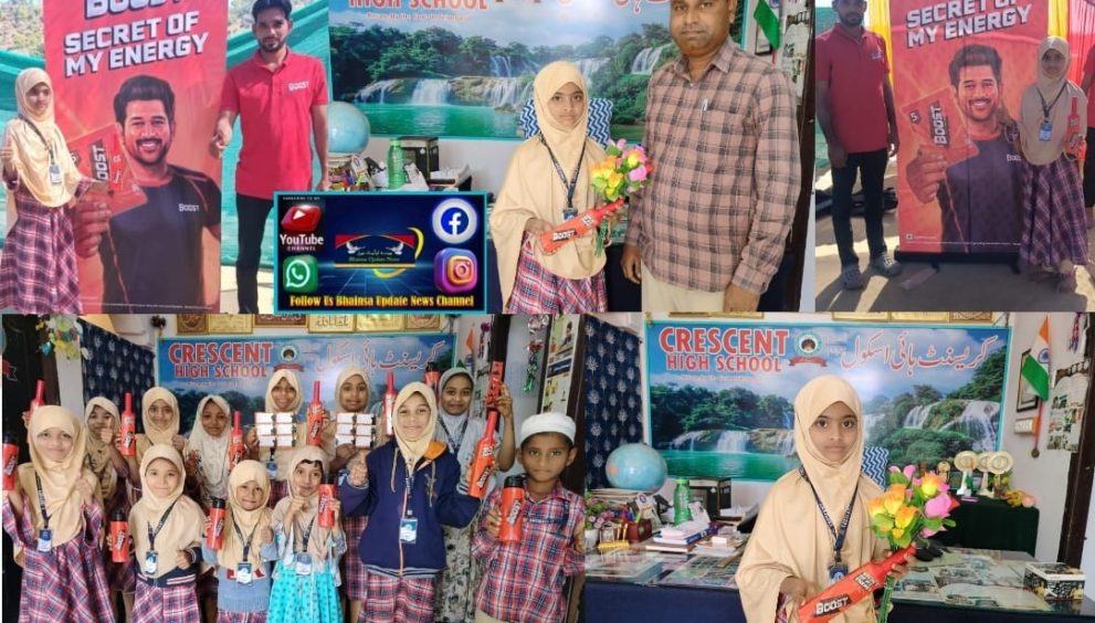 بھینسہ 11/ ڈسمبر (پٹریاٹک ویوز) آج کریسنٹ ہائی اسکول اردو میڈیم مدینہ کالونی بھینسہ میں بوسٹ کمپنی ٹیم نے ہمارے کیمپس کا دورہ کیا اور بوسٹ کمپنی کی جانب سے ایک خصوصی تعلیمی سرگرمی کا اہتمام کیا گیا کمپنی کے نمائندے نے طلباء کے درمیان ایک امتحان منعقد کیا جس میں طلباء نے بھرپور دلچسپی کے ساتھ حصہ لیا امتحان میں جن طلباء نے نمایاں کامیابی حاصل کئے جن میں قابل ذکر عنایت فاطمہ خان ولد عالم خان (یادول خان) اور دیگر کو بوسٹ ٹیم کی جانب سے انعامات سے نوازا گیا اور تمام شریک طلبہ کو ایک بوسٹ پیکٹ بطور حوصلہ افزائی تحفہ دیا گیا اس موقع پر اسکول پرنسپل عبدالکریم ، اسکول انتظامیہ جن میں سید بشیر ، سید محسن اور دیگر اسٹاف نے بوسٹ ٹیم کا شکریہ ادا کیا اور کہا کہ اس طرح کے پروگرام اور تعلیمی سرگرمیاں طلباء میں اعتماد، مسابقتی جذبہ اور تعلیمی دلچسپی پیدا کرنے میں معاون ہوتے ہیں۔